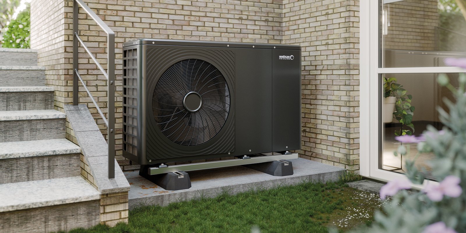 Bild: © Hier steht die Außeneinheit der Luft-Wasserwärmepumpe an einem geeigneten Standort. Quelle: August Brötje GmbH