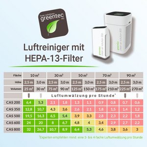 Geeignet für Raumgrößen bis zu 74m². Der integrierte HEPA-13-Filter erreicht eine Filtrationsrate von 99,95%.