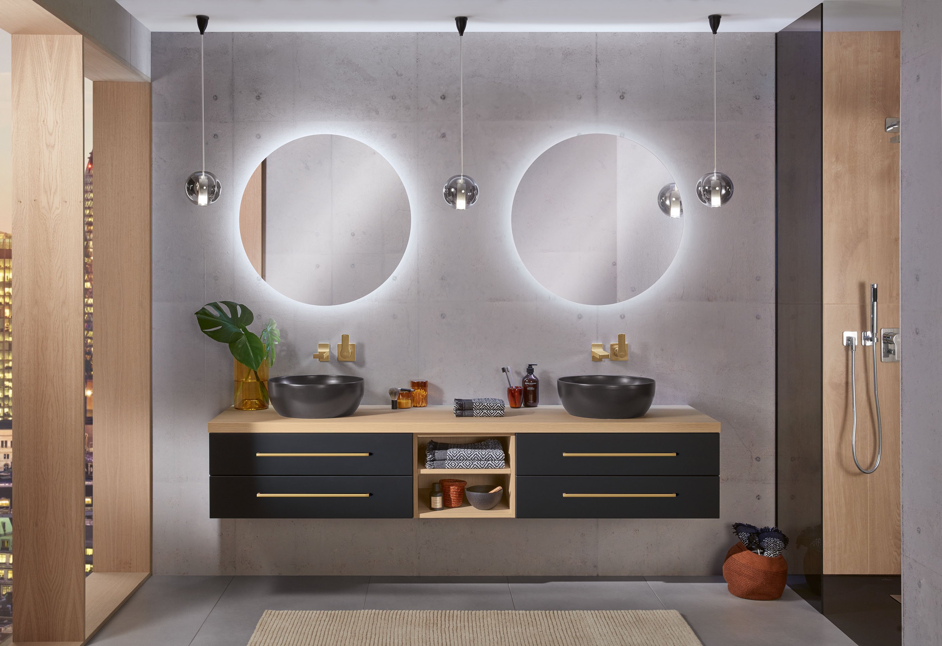 Sämtliche Griffe, Beschläge, Accessoires und Leuchten sind von bester Qualität. So sind Spiegelschränke und Lichtspiegel ausschließlich mit energieeffizienten LEDs ausgestattet und alle Elektroteile sind natürlich VDE-geprüft.